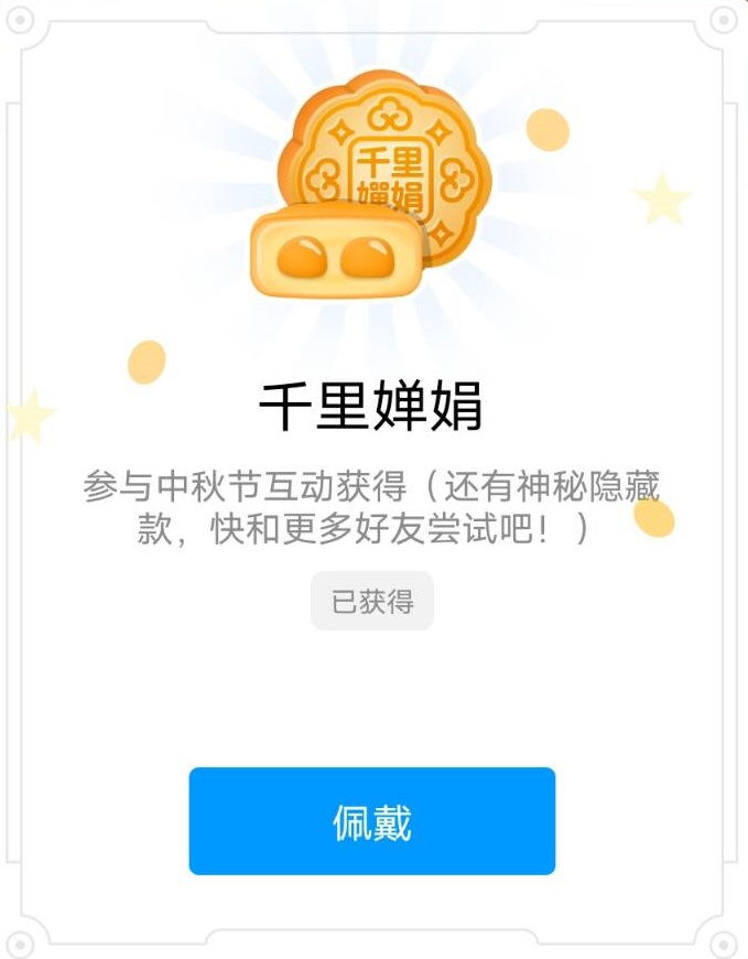 騰訊QQ在2023年9月中秋節前開啟了中秋節互動活動,在和QQ好友私信煙花超級表情后可隨機獲得一種月餅標識。