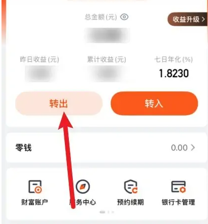 然后進入旺財賬戶界面,點擊轉(zhuǎn)出按鈕。