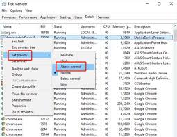 4. 右鍵點擊該進程,選擇“設(shè)置優(yōu)先級”。這里有多個優(yōu)先級選項,如“實時”“高”“高于正常”“正常”“低于正常”“低”。