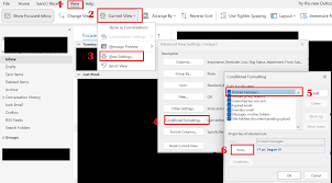在“視圖”菜單中,您可以看到一系列與郵件顯示相關(guān)的設(shè)置選項(xiàng)。這里重點(diǎn)關(guān)注“當(dāng)前視圖”組中的“視圖設(shè)置”按鈕,點(diǎn)擊它進(jìn)入視圖設(shè)置對(duì)話框。