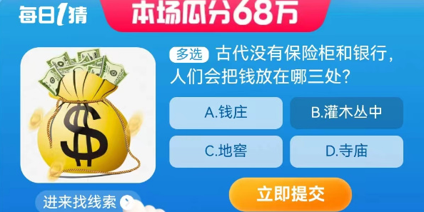 【多選題】古代沒有保險柜和銀行人們會把錢放在哪三處?
